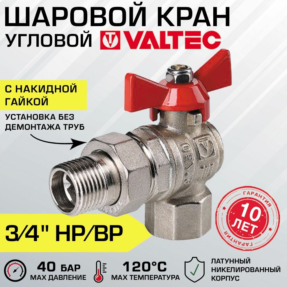 Кран шаровой 3/4" FM с накидной гайкой угловой (7/84) Valtec VT.228.N.05