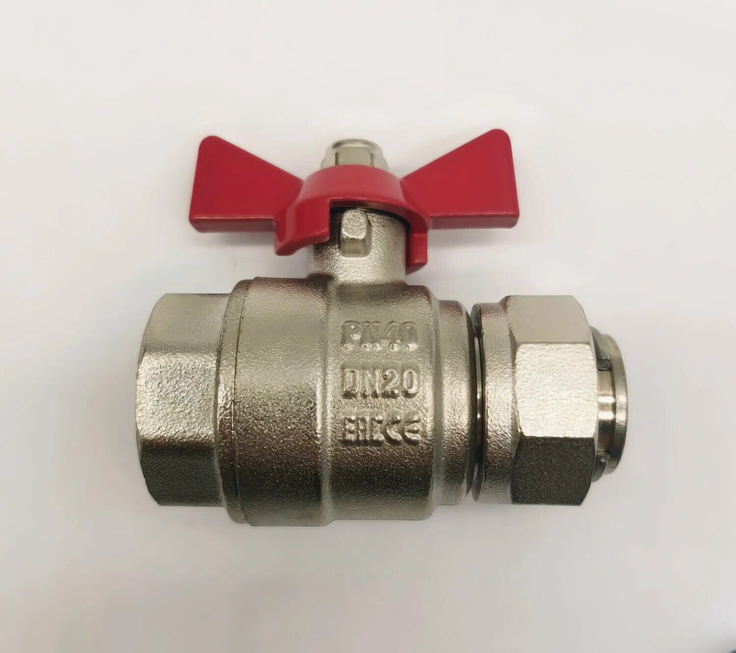Кран шаровой с накидной гайкой 3/4" ВВ, никелированный, ручка-бабочка, TIM арт. BV209-C03FN