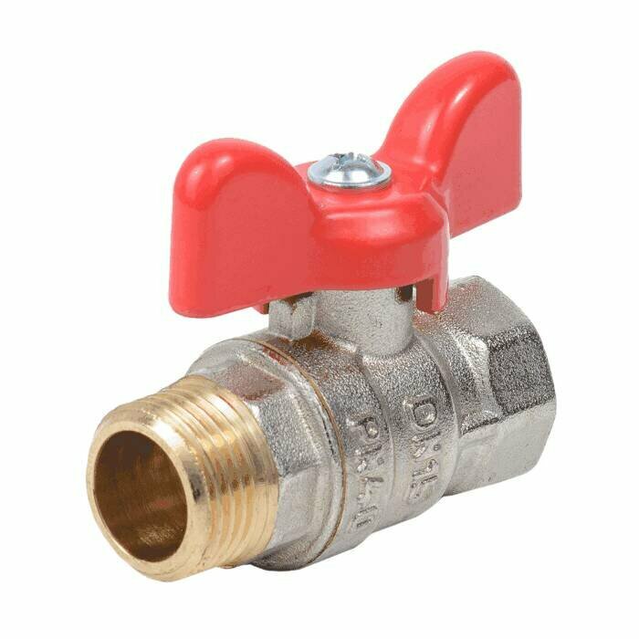 Кран шаровой латунь никель Стандарт Ду 15 Ру40 ВР/НР полнопроходной бабочка красная Dist Н321Б