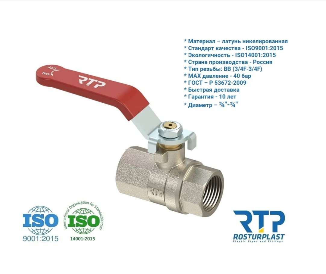 Купить Шаровый кран 3/4 дюйма RTP шаровой латунный вн/вн PN 40 ручка рычаг