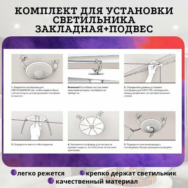 СохранитьЗакладная платформа с подвесом под светильник или люстру D 60-110 мм для натяжного потолка 8 шт интересное: