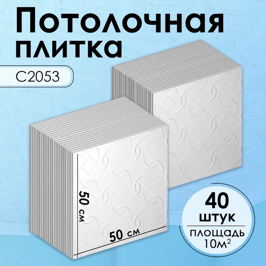 Купить Плитка потолочная, Экструдированная, С2053 "Белый", 50x50 см, 10кв.м, 40 шт.