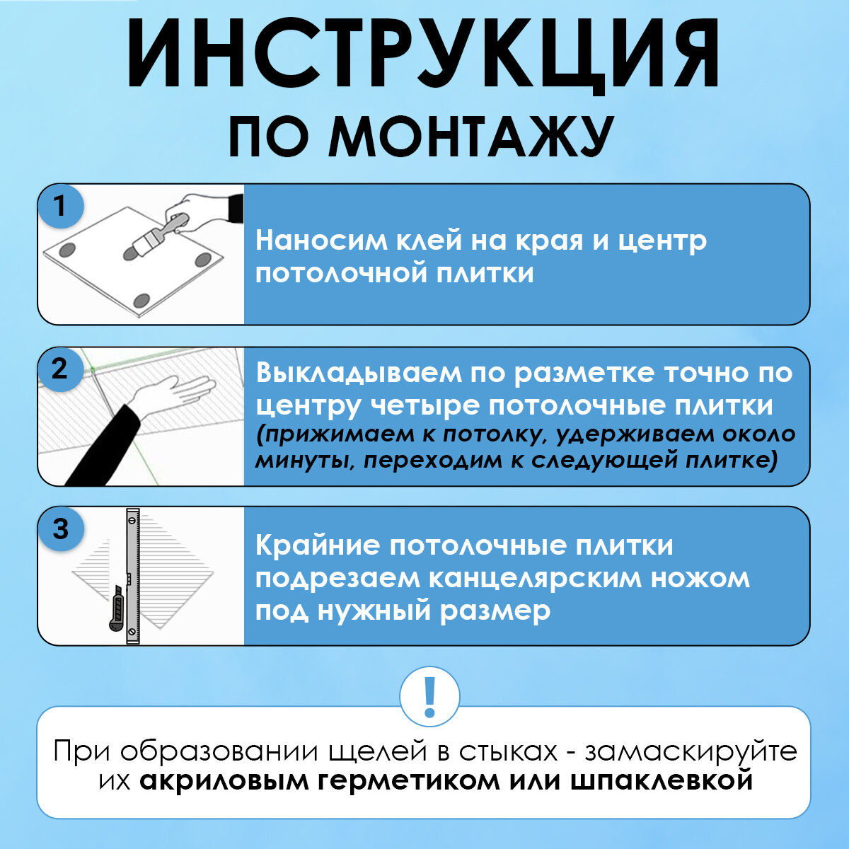 Плитка потолочная, Экструдированная, С1000 "Голубой", 50x50 см, 10кв.м, 40 шт.