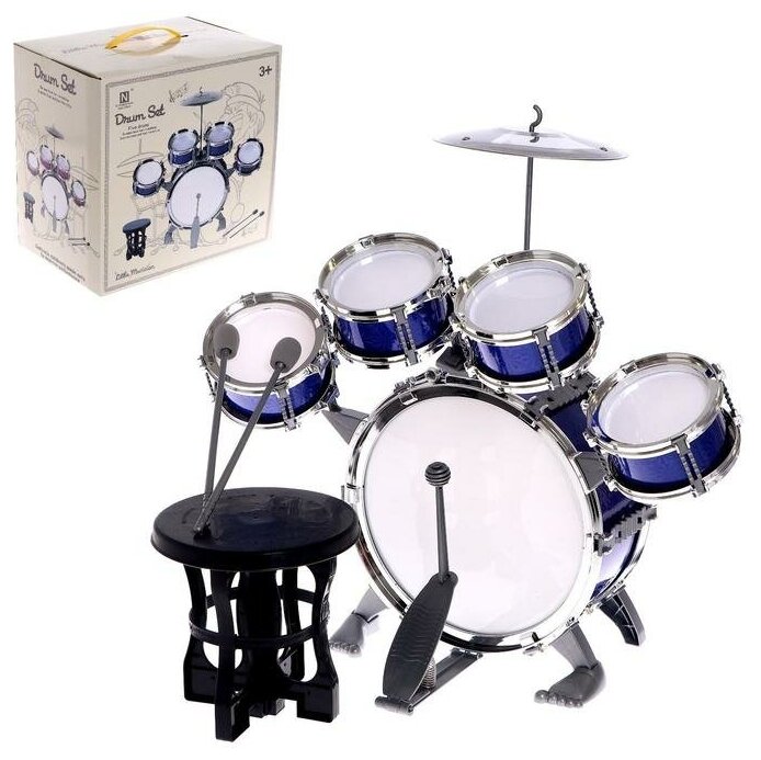 Купить Барабанная установка "Басист", 5 барабанов, тарелка, палочки, стульчик, педаль, микс 5246446