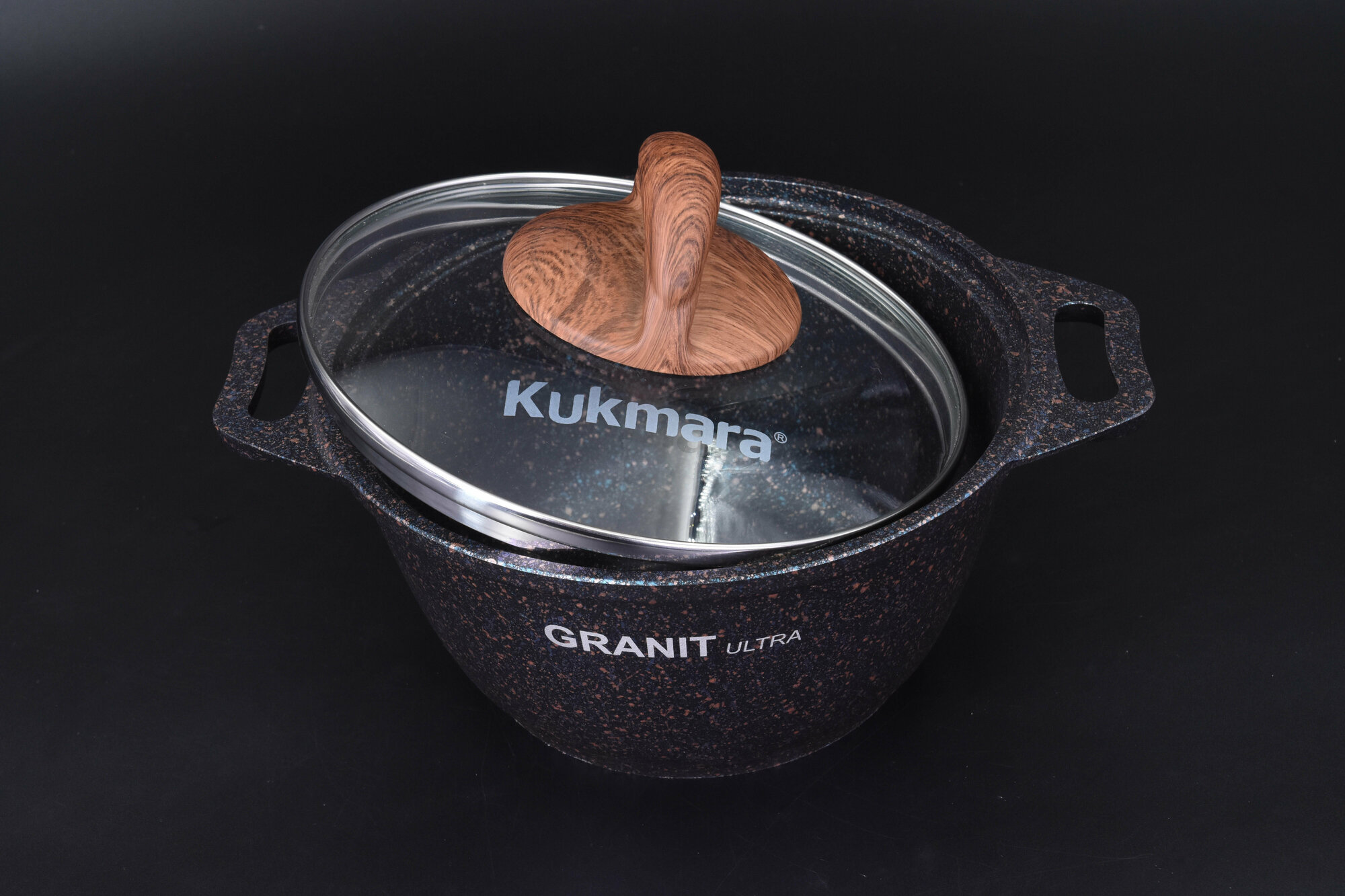 Кастрюля Kukmara Granit ultra, 8 л, стеклянная крышка, антипригарное покрытие