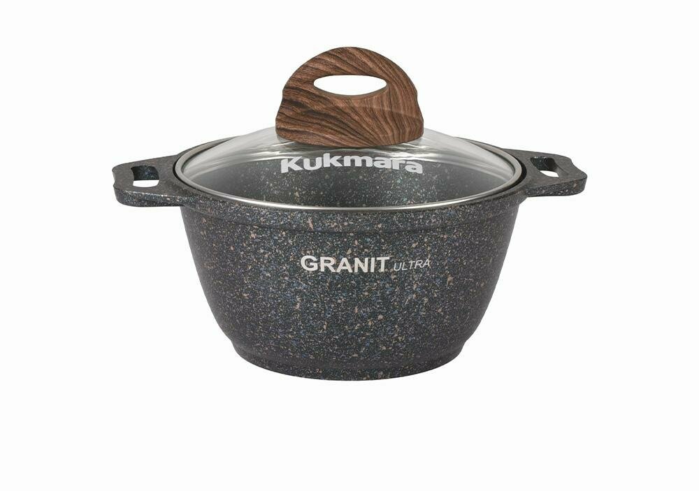 Кастрюля Kukmara Granit ultra, 3 л, стеклянная крышка, антипригарное покрытие