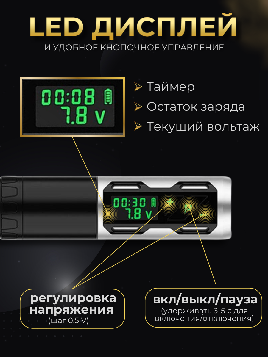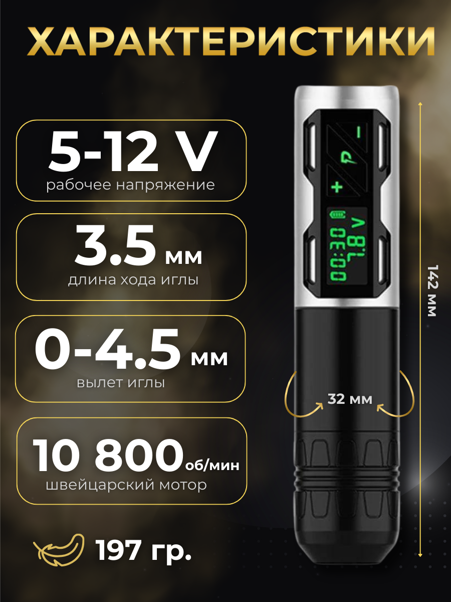 Беспроводная машинка ручка для тату и татуажа Defender VECTOR Chromium