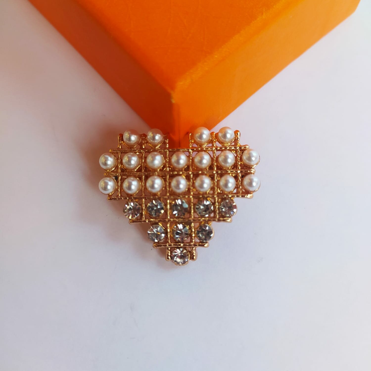 Брошь "Сердце" жемчужная половина, цвет белый в золоте интересное:
