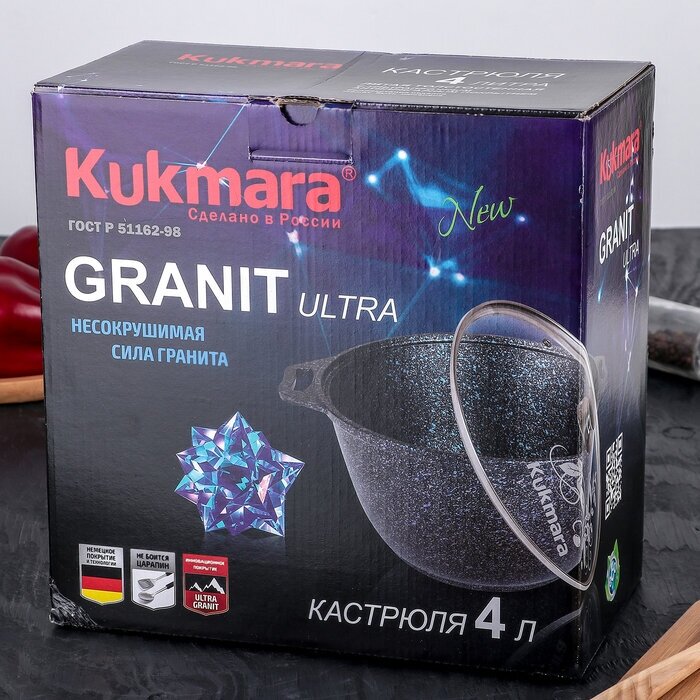 Кастрюля с крышкой Kukmara Granit ultra антипригарная, 6 л