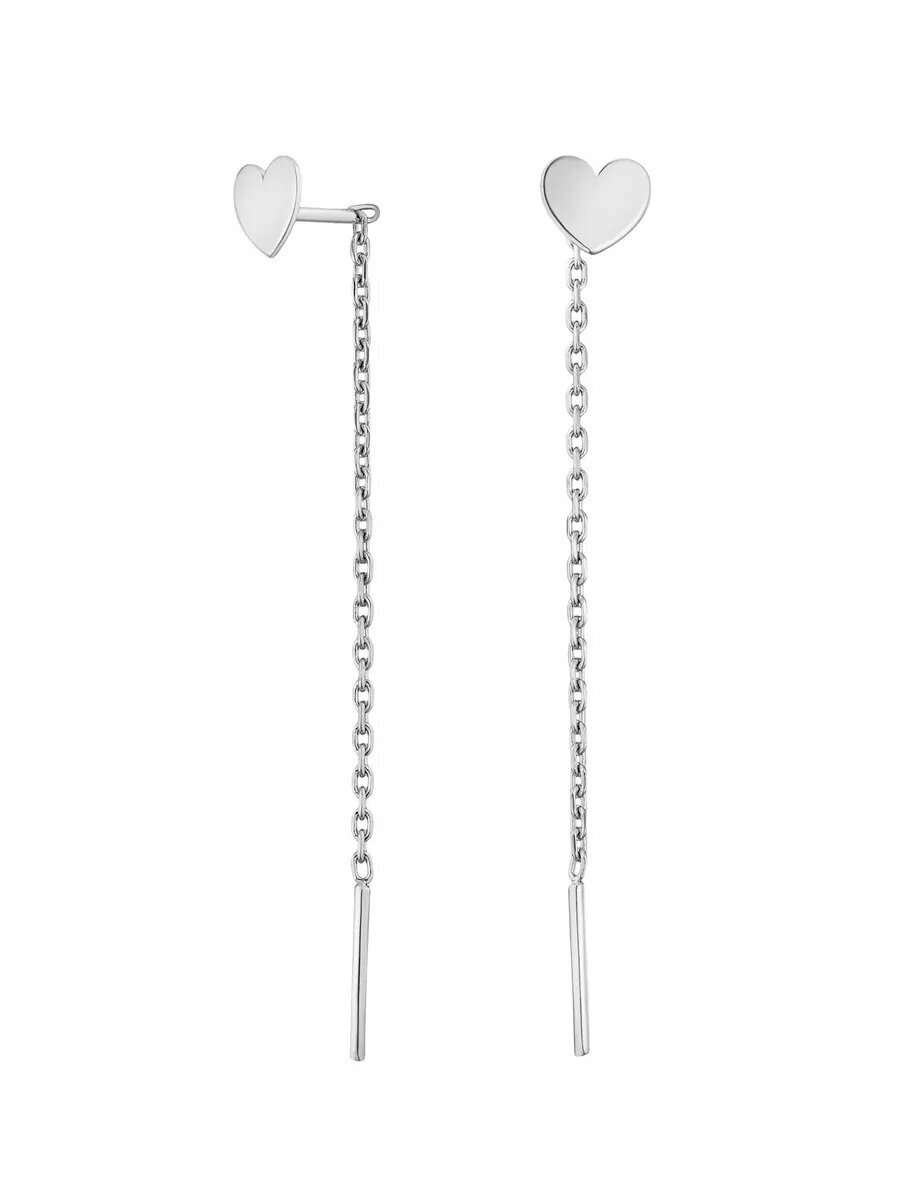 Купить Серьги серебряные 925 пробы длинные висячие протяжки Сердце, продевки Сердечки на цепочке, ср.вес изделия 0,98 гр, арт. 2023636/9 Ювелир Карат