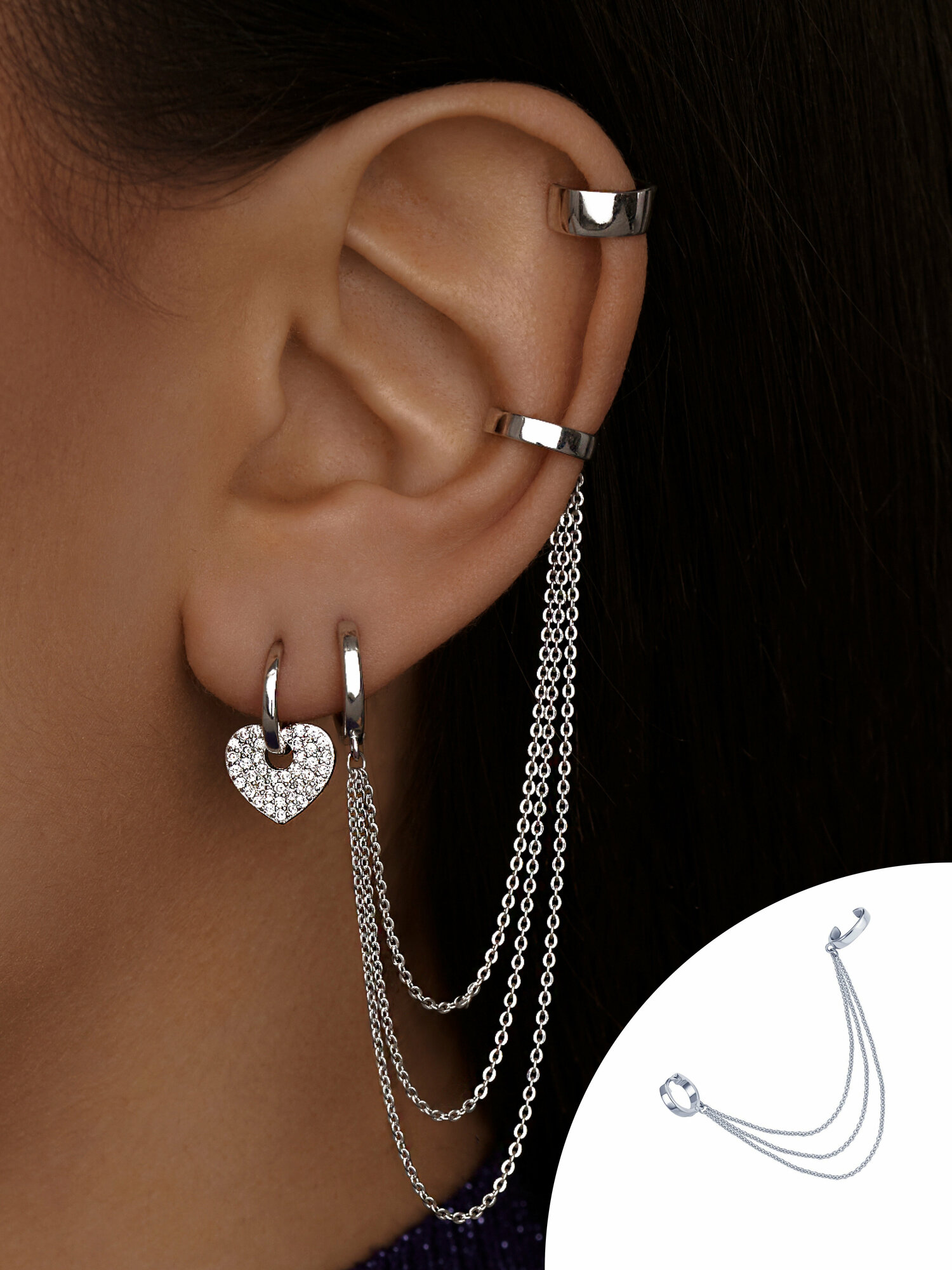 Моносерьга MIESTILO серебро 925, одиночная серьга кафф с цепочкой