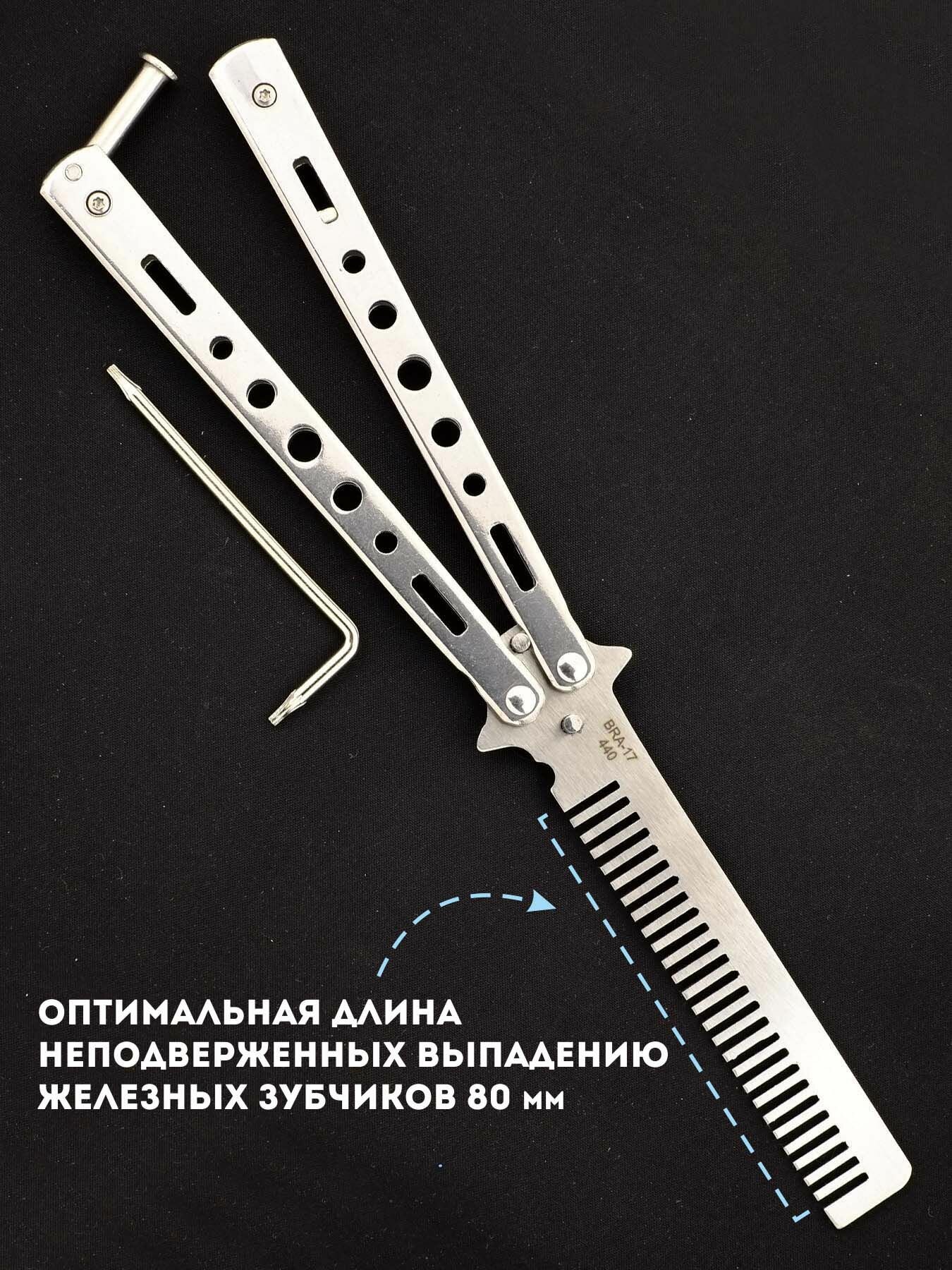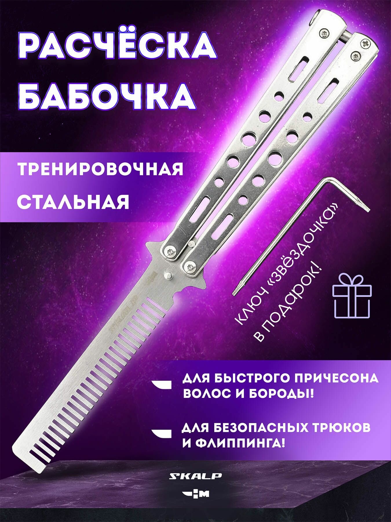 СохранитьНож бабочка расческа тренировочный Ножемир SKALP серебристый BRA-17 интересное: