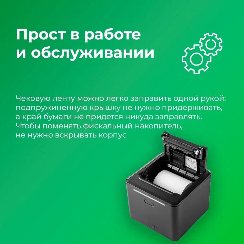 | Особенности | авторезка чека / встроенный принтер чеков / встроенный фискальный накопитель / подключение банковского терминала / подключение денежного ящика / подключение дисплея покупателя / подключение клавиатуры / подключение сканера штрих кода / портативный |