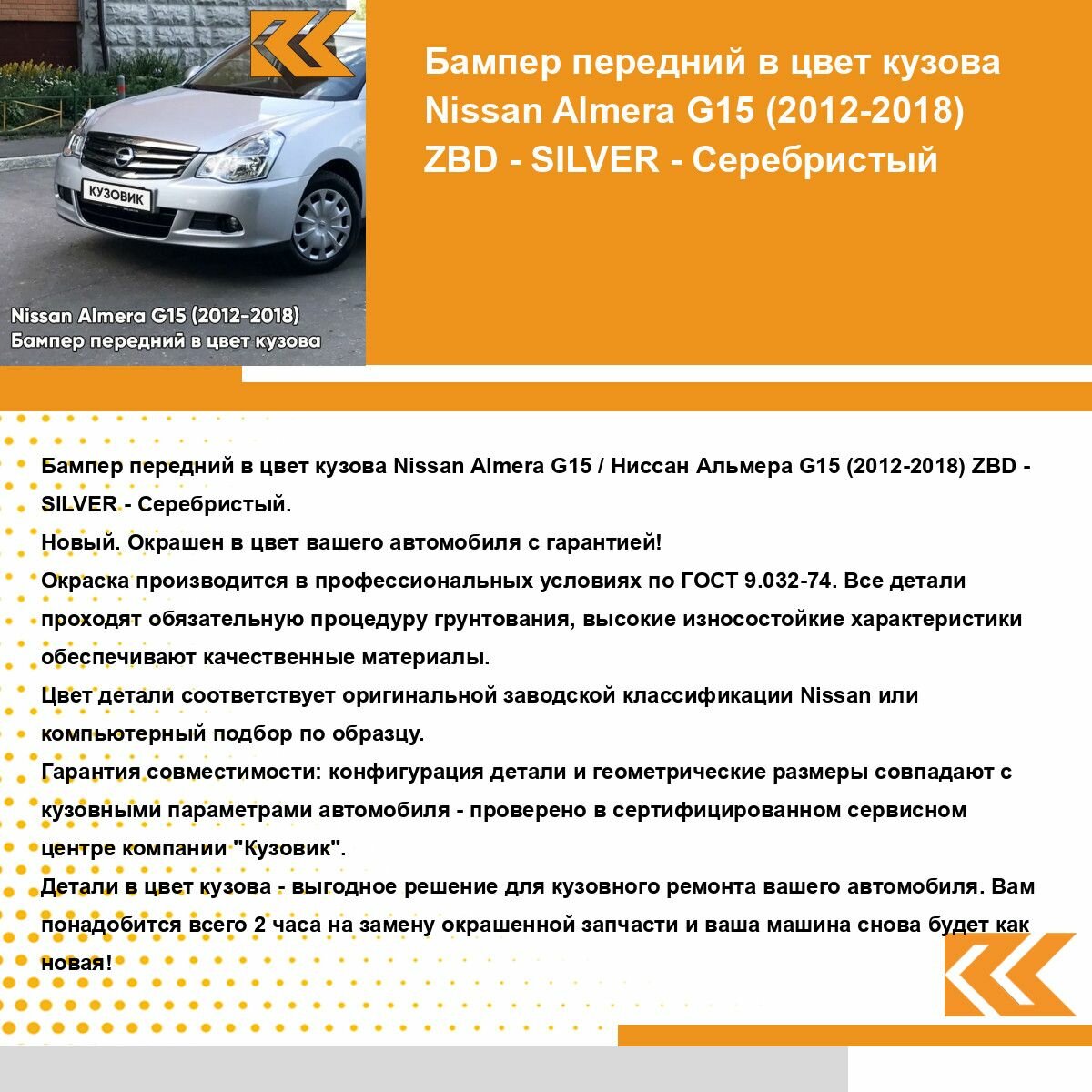 Бампер передний в цвет Nissan Almera G15 (2012-2018) ZBD - SILVER - Серебристый