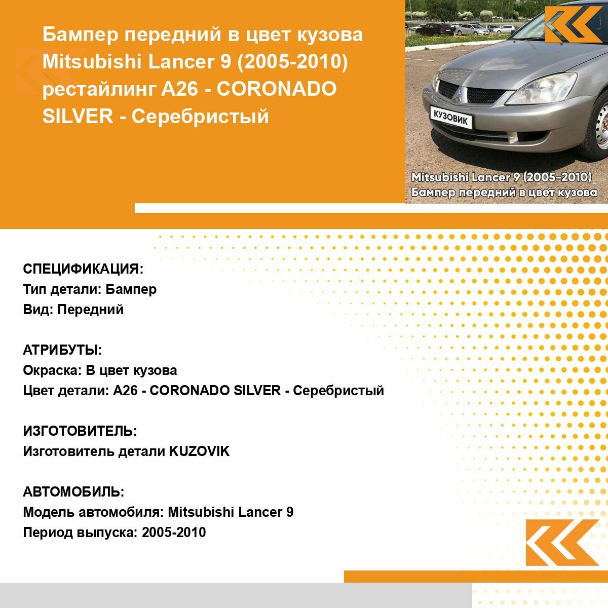 Бампер передний в цвет Mitsubishi Lancer 9 (2005-2010) рестайлинг A26 - CORONADO SILVER - Серебристый