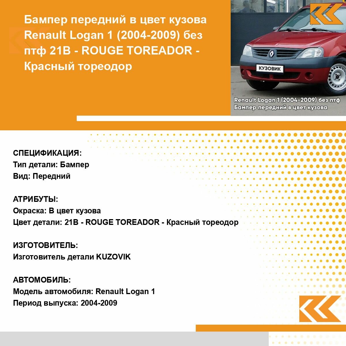 СохранитьБампер передний в цвет кузова для Рено Логан 1 Renault Logan 1 (2004-2009) 21B - ROUGE TOREADOR - Красный тореодор, без отверстий под птф интересное:
