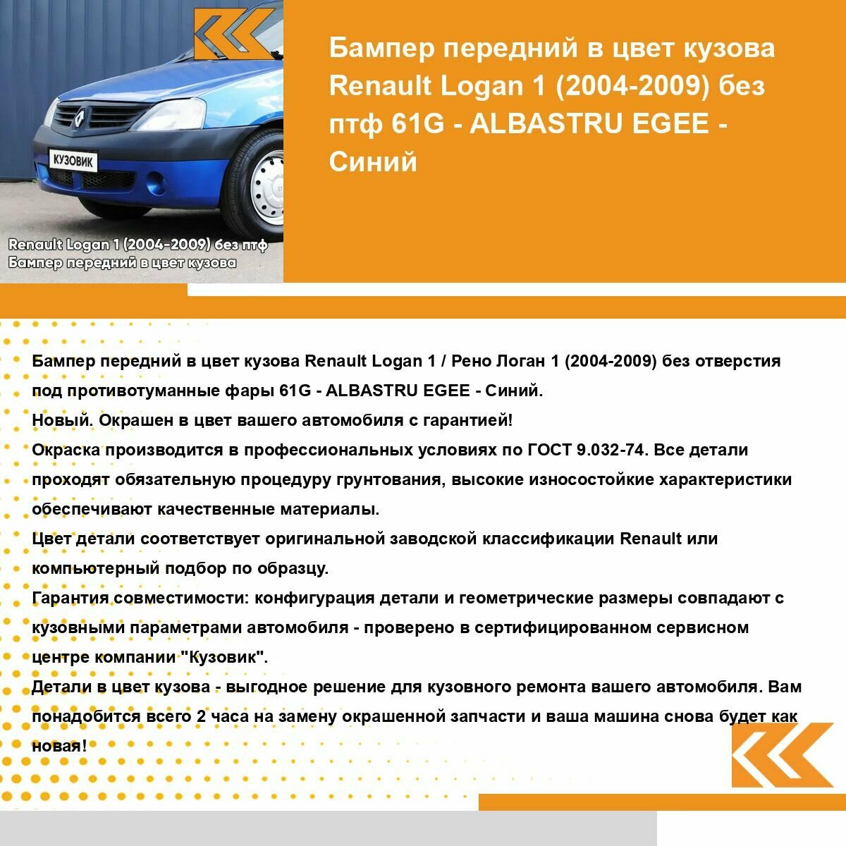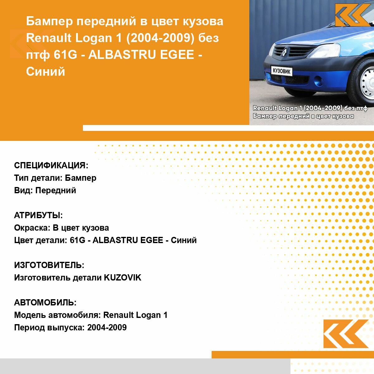 Бампер передний в цвет Renault Logan 1 (2004-2009) без птф 61G - ALBASTRU EGEE - Синий