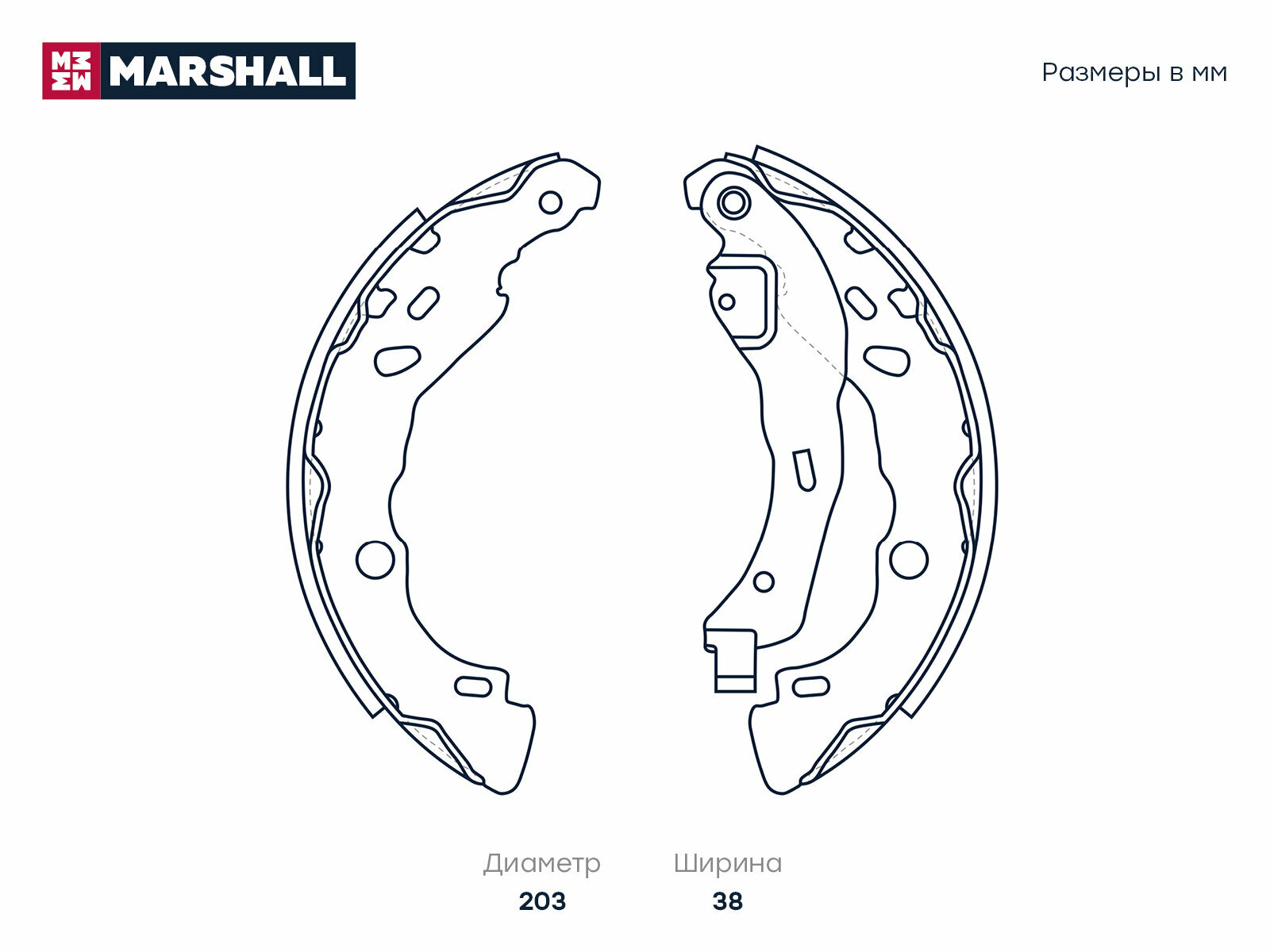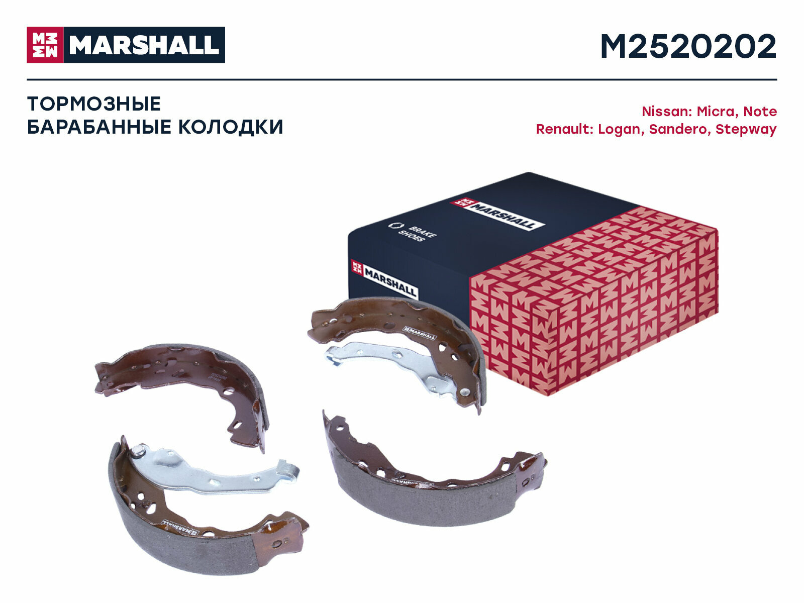 Тормозные колодки барабанные задние MARSHALL M2520202 для Nissan Micra IV, Nissan Note, Renault Logan I, Renault Sandero I // кросс-номер TRW GS8455
