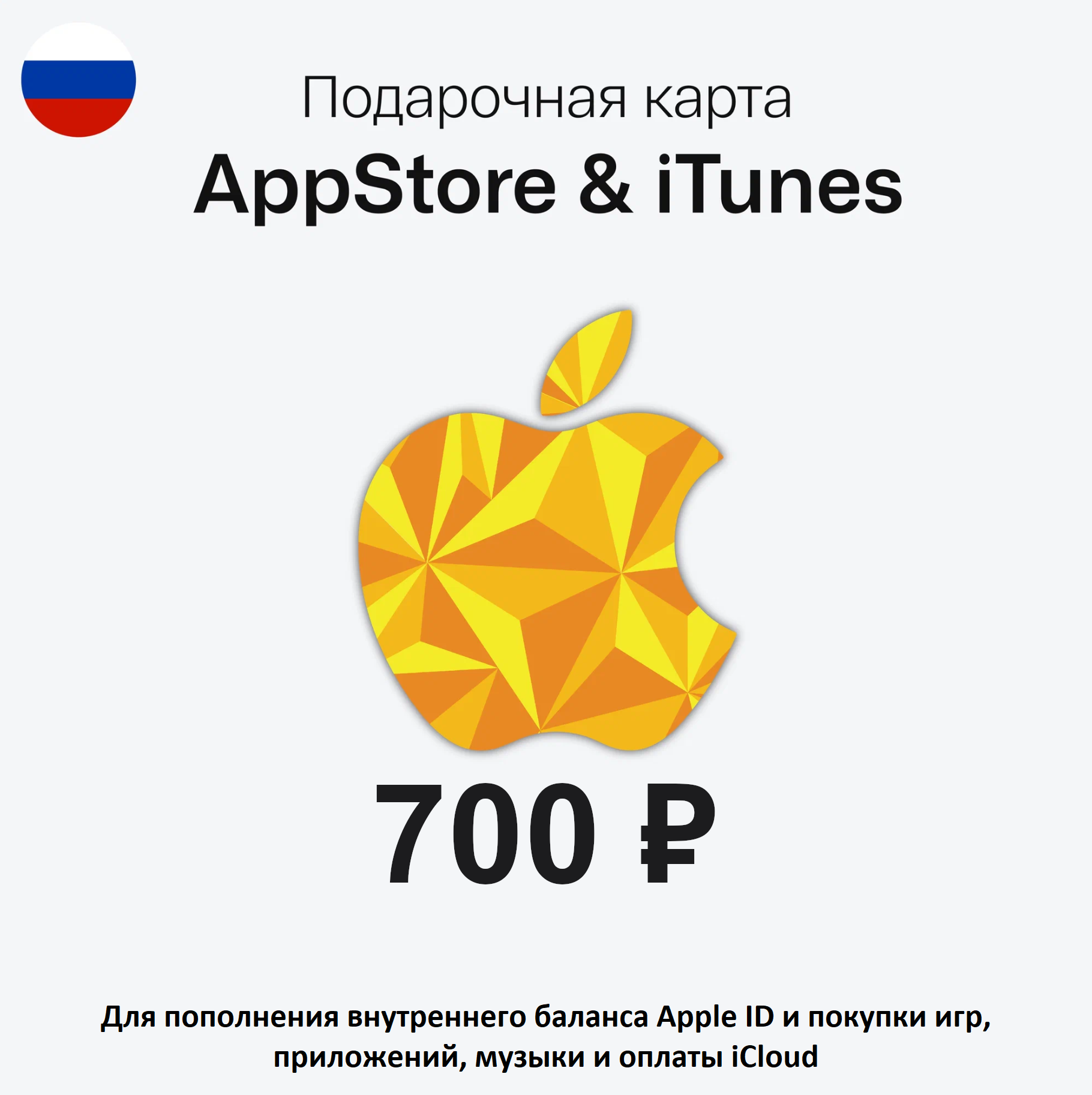 Купить Подарочная карта Apple App Store номиналом 700 рублей для любых цифровых покупок