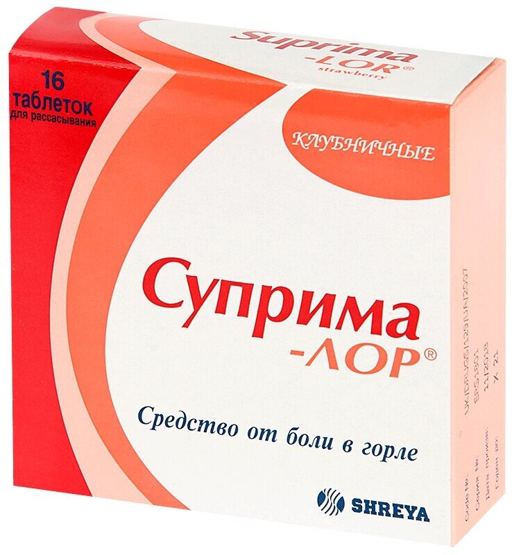 Суприма-Лор, таблетки для рассасывания (клубника), 16 шт.