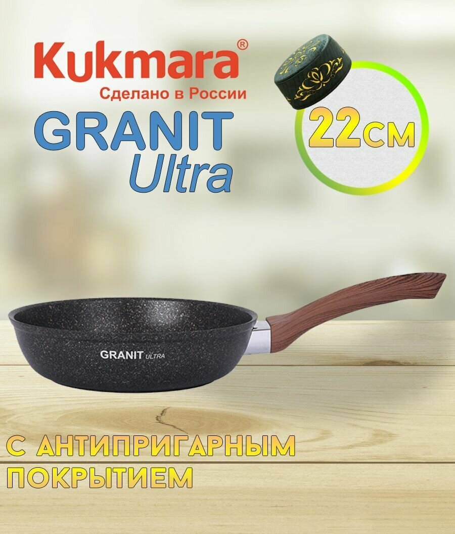 СохранитьKUKMARA Сковорода Granit Ultra original, d=22 см, пластиковая ручка, антипригарное покрытие, цвет тёмно-коричневый интересное: