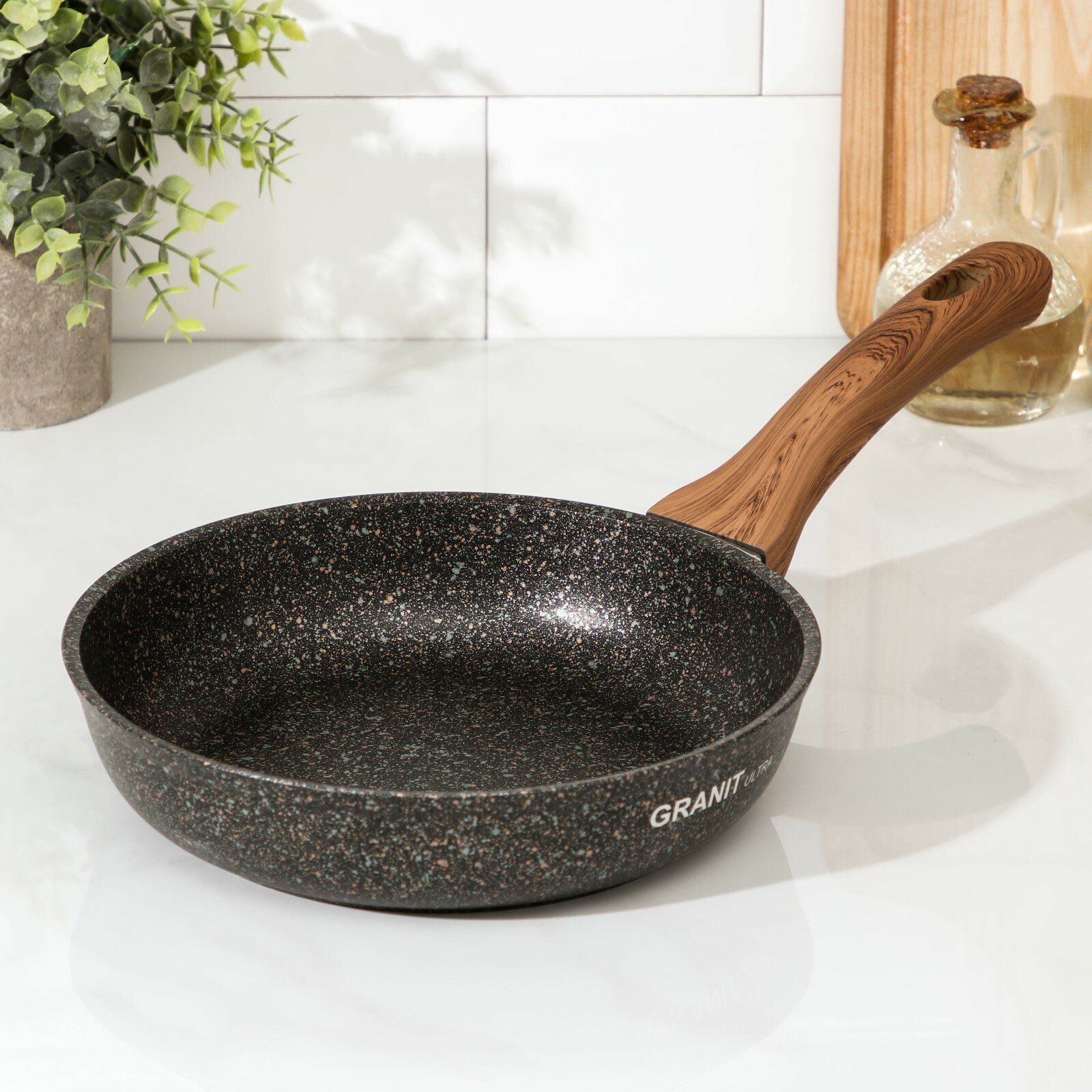 Сковорода Granit Ultra original, d=22 см, пластиковая ручка, антипригарное покрытие, цвет тёмно-кори .
