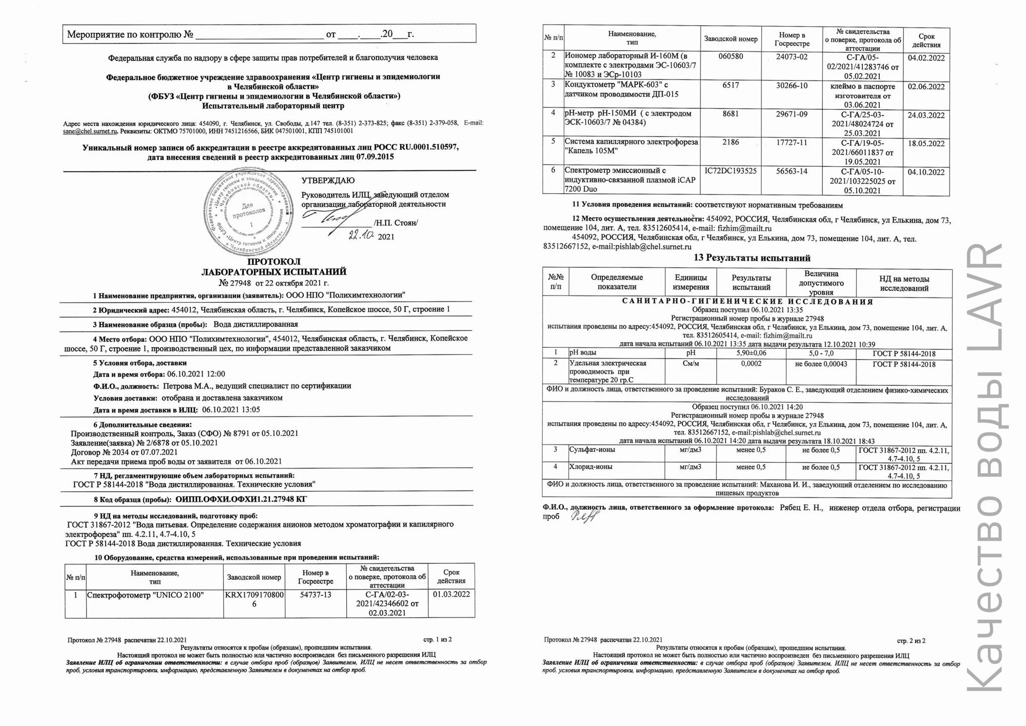 Топ-100 Дистиллированная вода