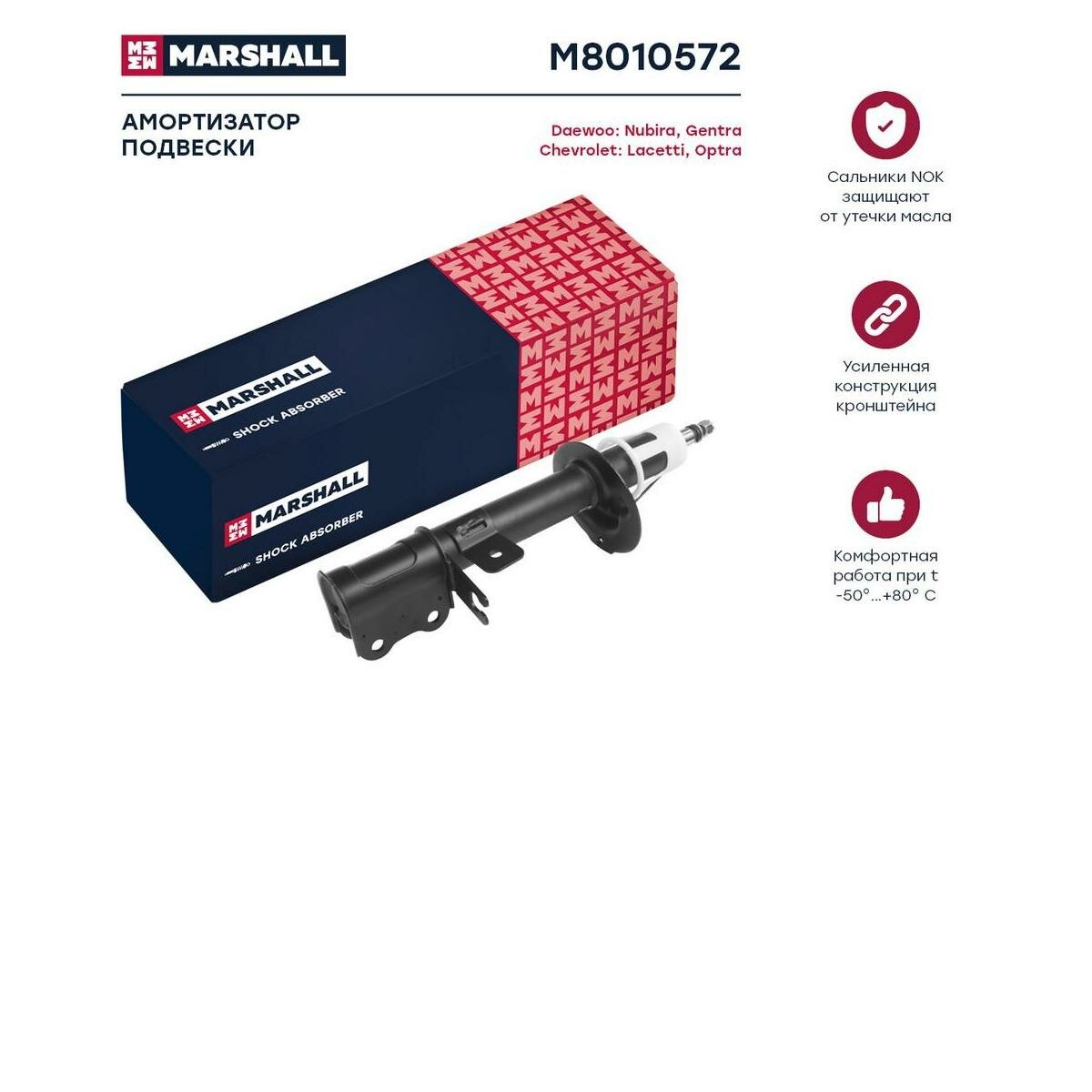 Амортизатор газонаполненный передний левый MARSHALL M8010691 для Chevrolet Lacetti 04-, Chevrolet Optra 04-, Daewoo Gentra 04-, Daewoo Nubira III 03-