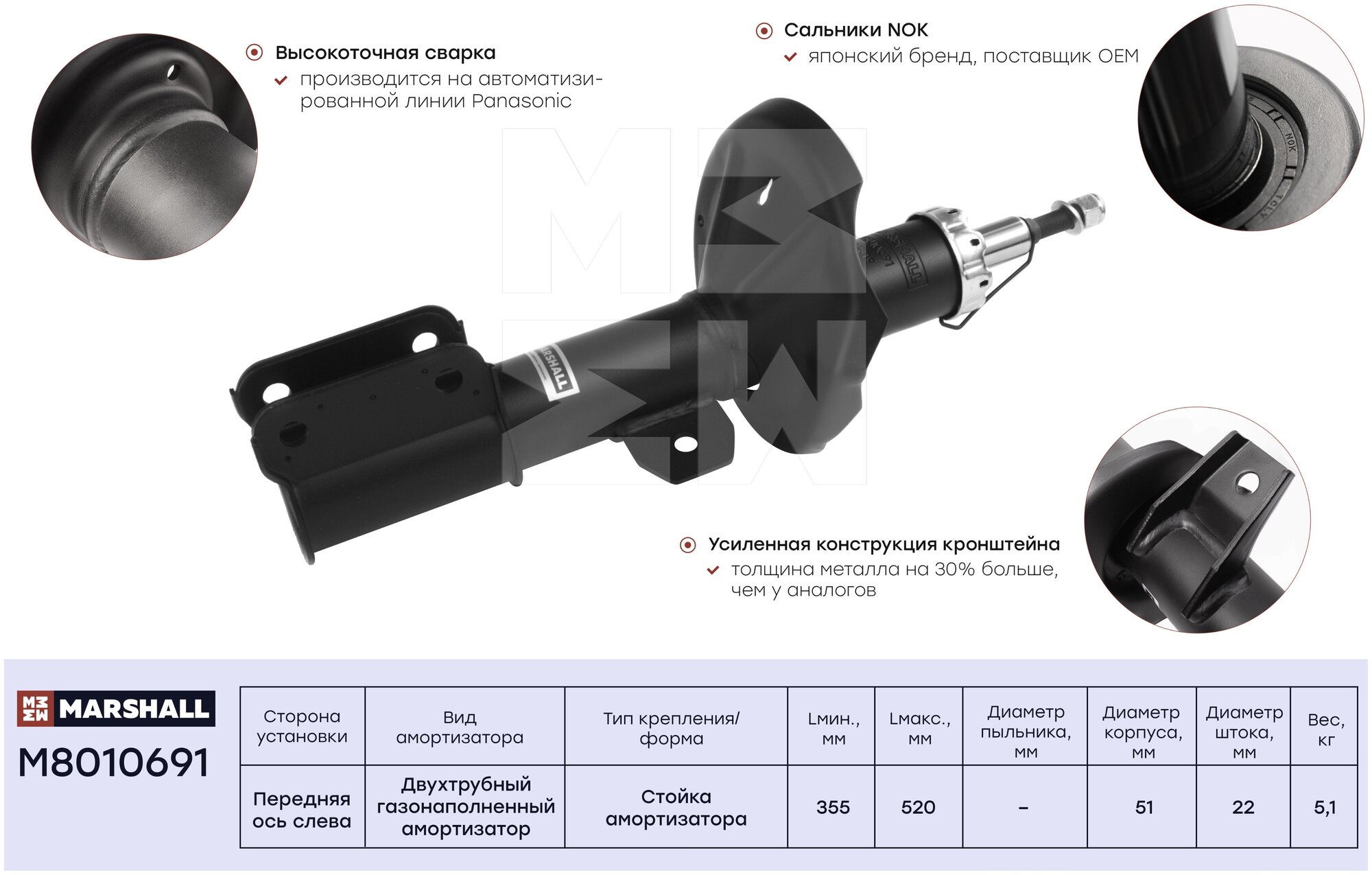 Амортизатор | перед лев | Marshall M8010691