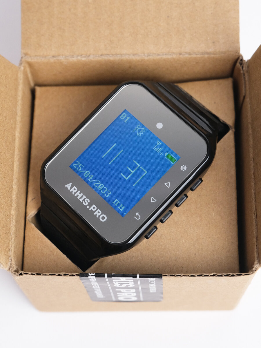 Кнопка вызова персонала официанта и часы пейджер. Комплект системы вызова персонала: кнопка Ультра "Вызов" - 20 шт, часы "Практик" - 4 шт.