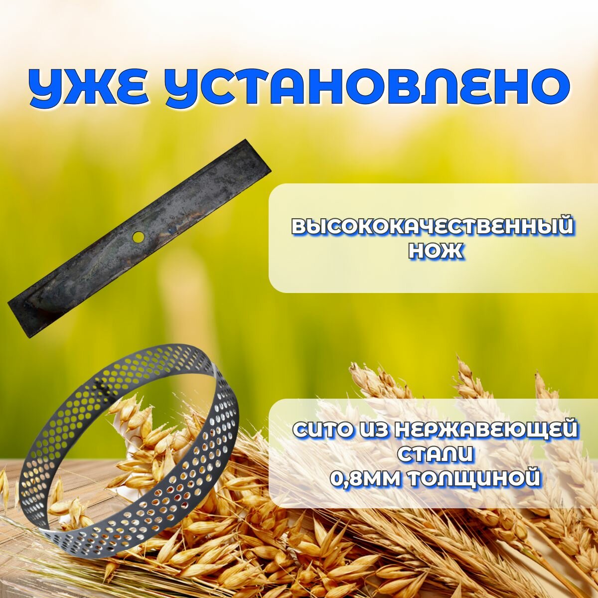 | Подробная комплектация | зернодробилка, сито, нож |