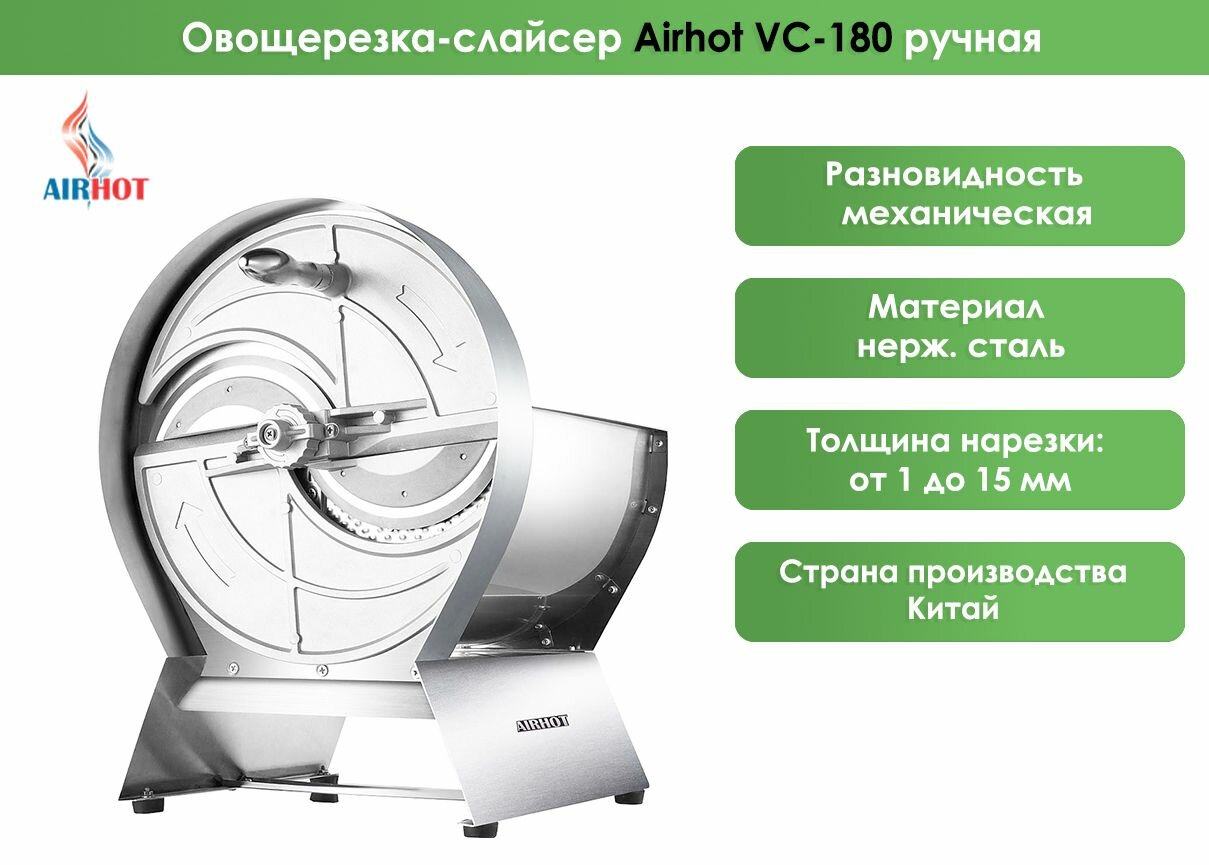 Ниже Вы можете прочитать отзывы на Овощерезка AIRHOT VC-180, ознакомится с подробными характеристиками, посмотреть интересные обзоры и фотографии на Овощерезка AIRHOT VC-180.