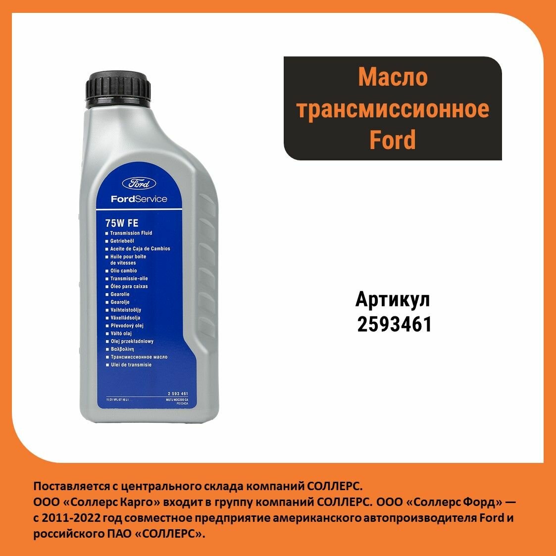 Масло трансмиссионное 75W FE (WSS-M2C200-D2) для мкпп, 1л Ford 2593461 интересное: