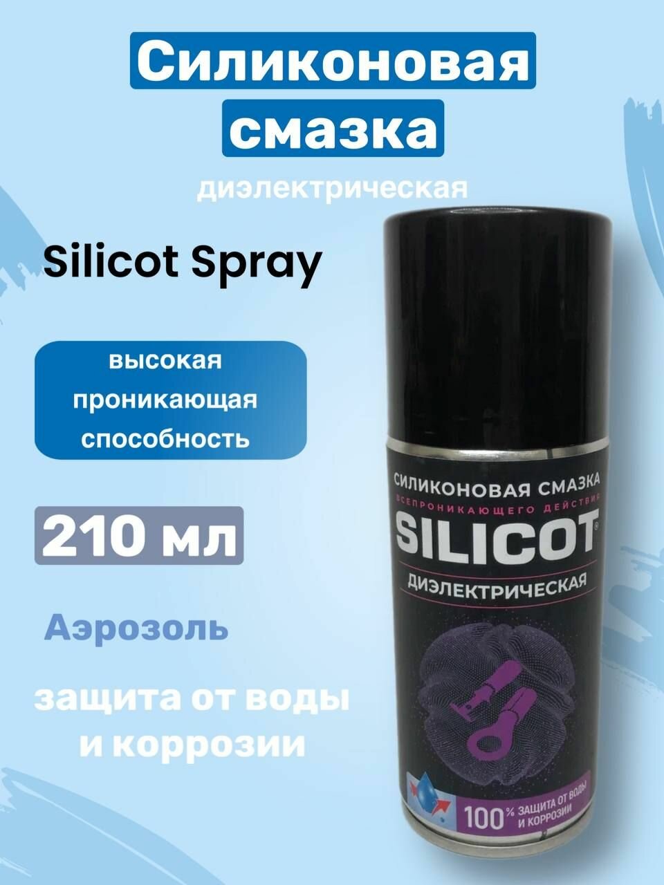 Смазка силиконовая Silicot Spray диэлектрическая, 210мл., повышает надежность работы электрики