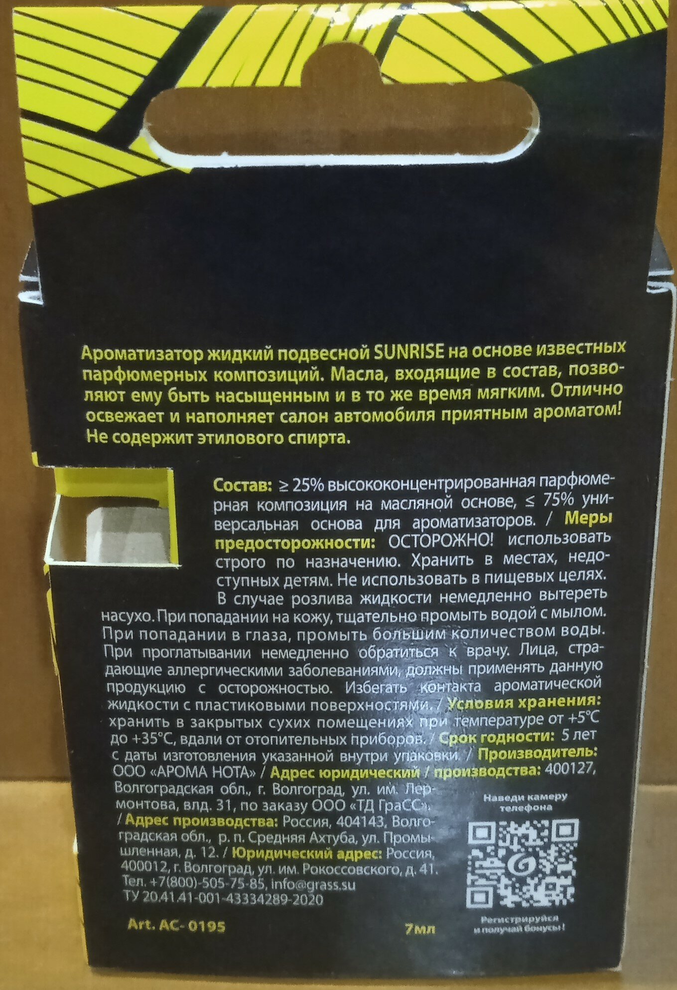 GRASS AC-0195 Ароматизатор GRASS подвесной "Sunrise" 7мл