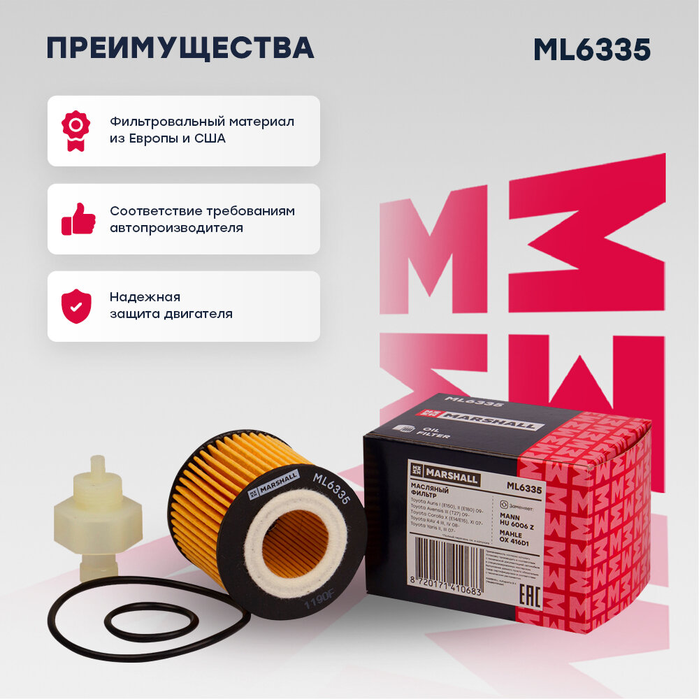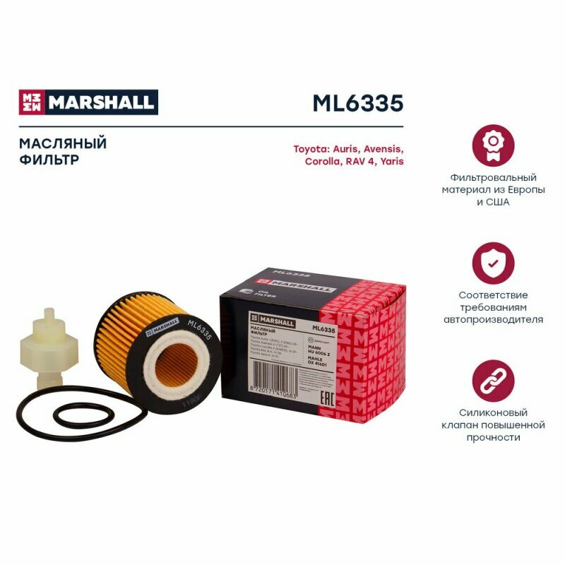 MARSHALL ML6335 Фильтр масляный Toyota Auris I, II 09- / Avensis III 09- / Corolla X, XI 07- / RAV 4 III, IV 08- (ML