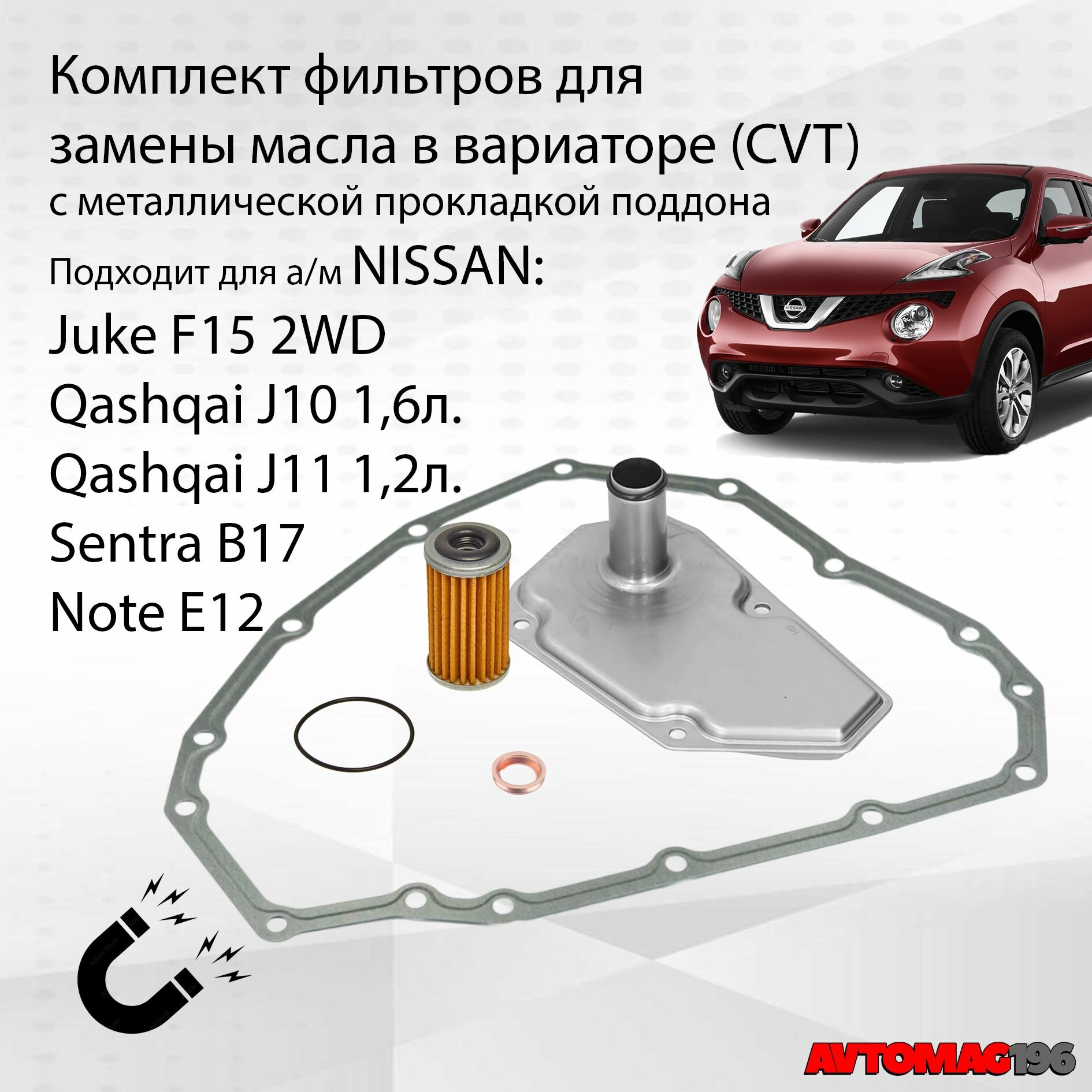 Комплект фильтров на вариатор с металлической прокладкой поддона Nissan Juke; Qashqai J10 1.6л; Note E12 фильтр вариатора Ниссан Жук, Нот Е12, Сентра, Кашкай J10 интересное: