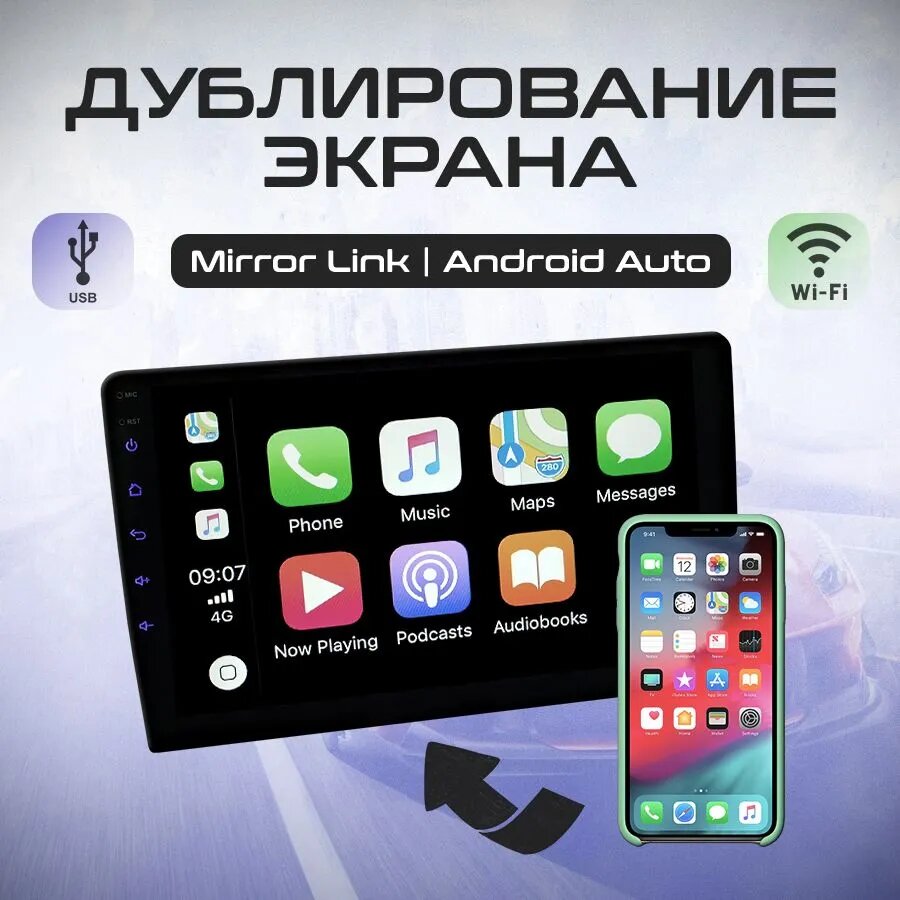 Магнитола автомобильная, автомагнитола 2 дин 4+64Gb, 9 дюймов), автомагнитола USB, AUX на передней панели, автомагнитола с блютуз, подсветка