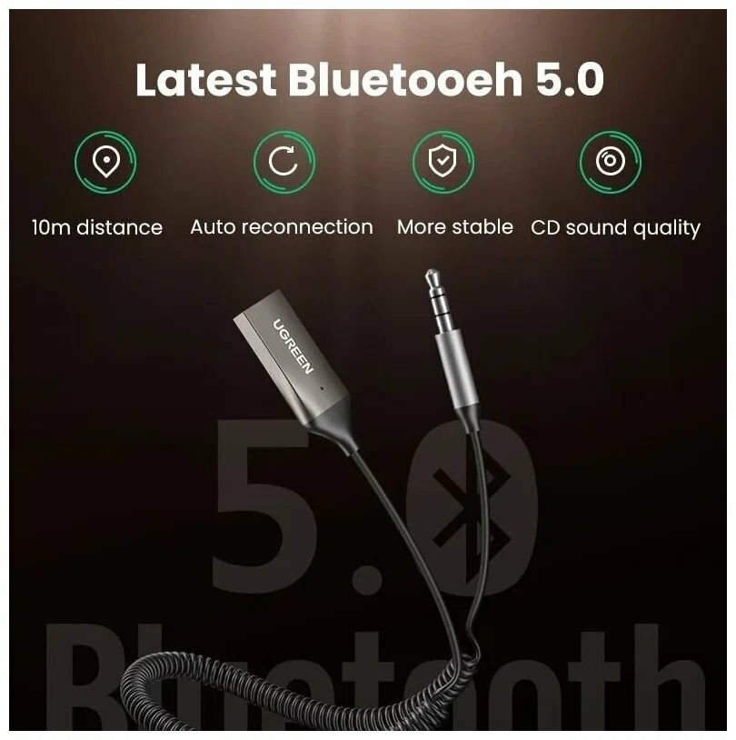 Адаптер UGREEN CM309 (70601) Bluetooth 5.0 Car Receiver Aux с микрофоном интересное: