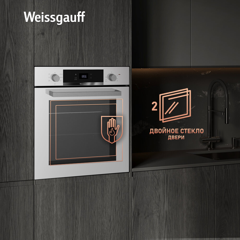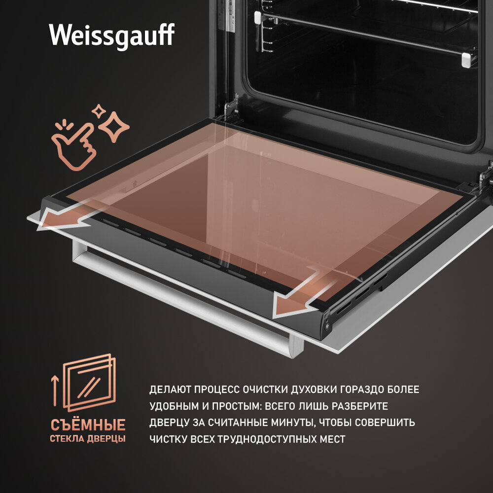 Духовой шкаф Weissgauff EOV 770 PDX каталитическая очистка, двойное стекло дверцы, эмаль, сенсорное управление