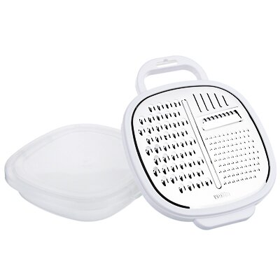 | Плюсы: | Тёрка острая. В использовании удобная, можно использовать как лоток с крышкой. |