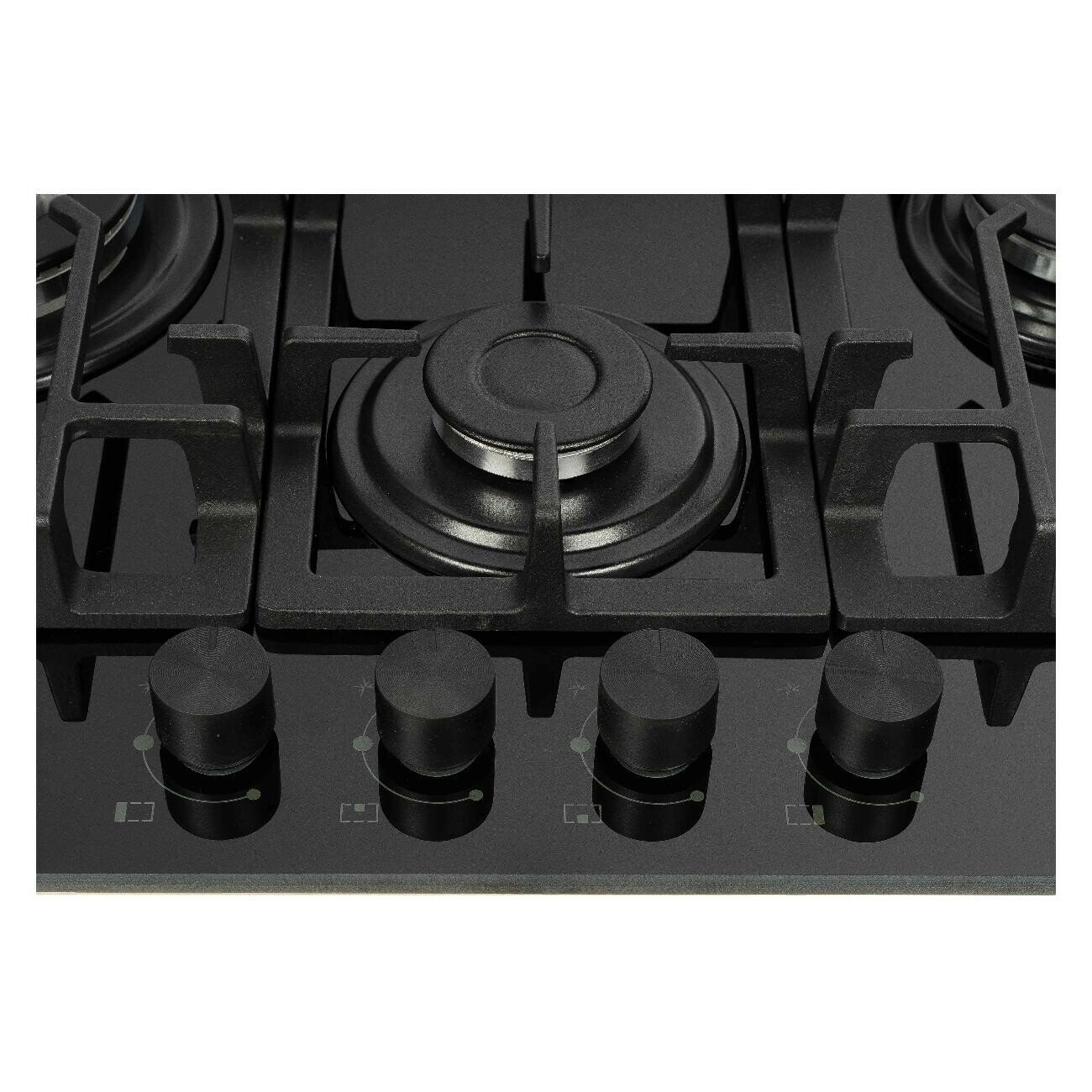 Газовая варочная панель DeLonghi GABRIELLA 6GW NB, 64 см, черная, WOK-конфорка, чугунные решетки, автоматический розжиг, газ-контроль