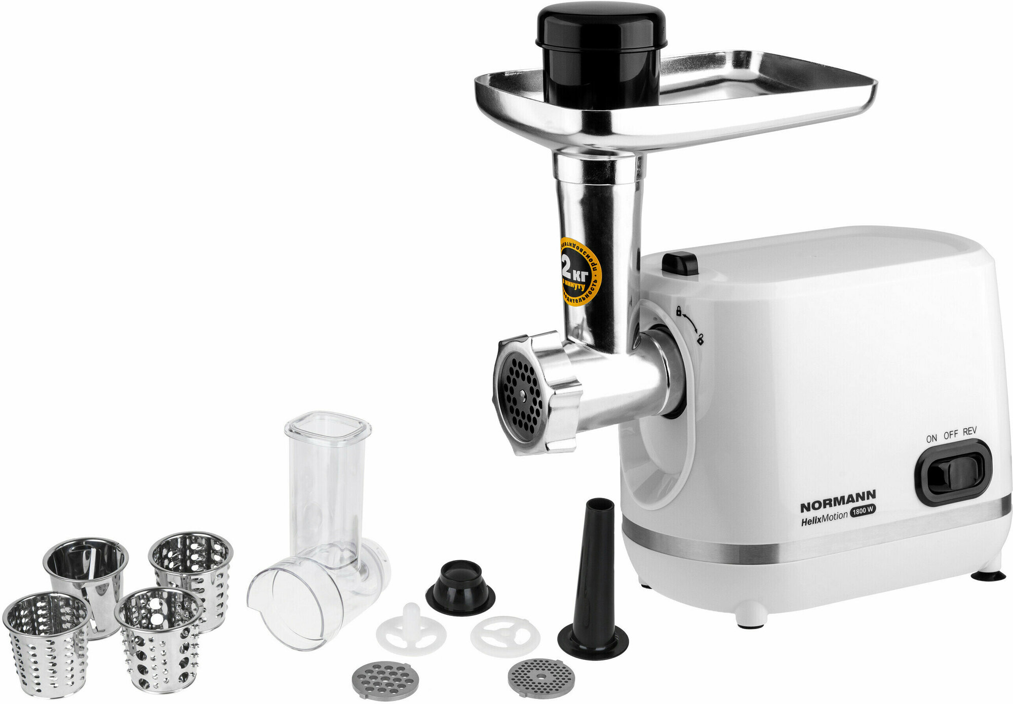Мясорубка электрическая AMG-553 NORMANN, 1800 Вт, (реверс; овощерезка; терка для драников)