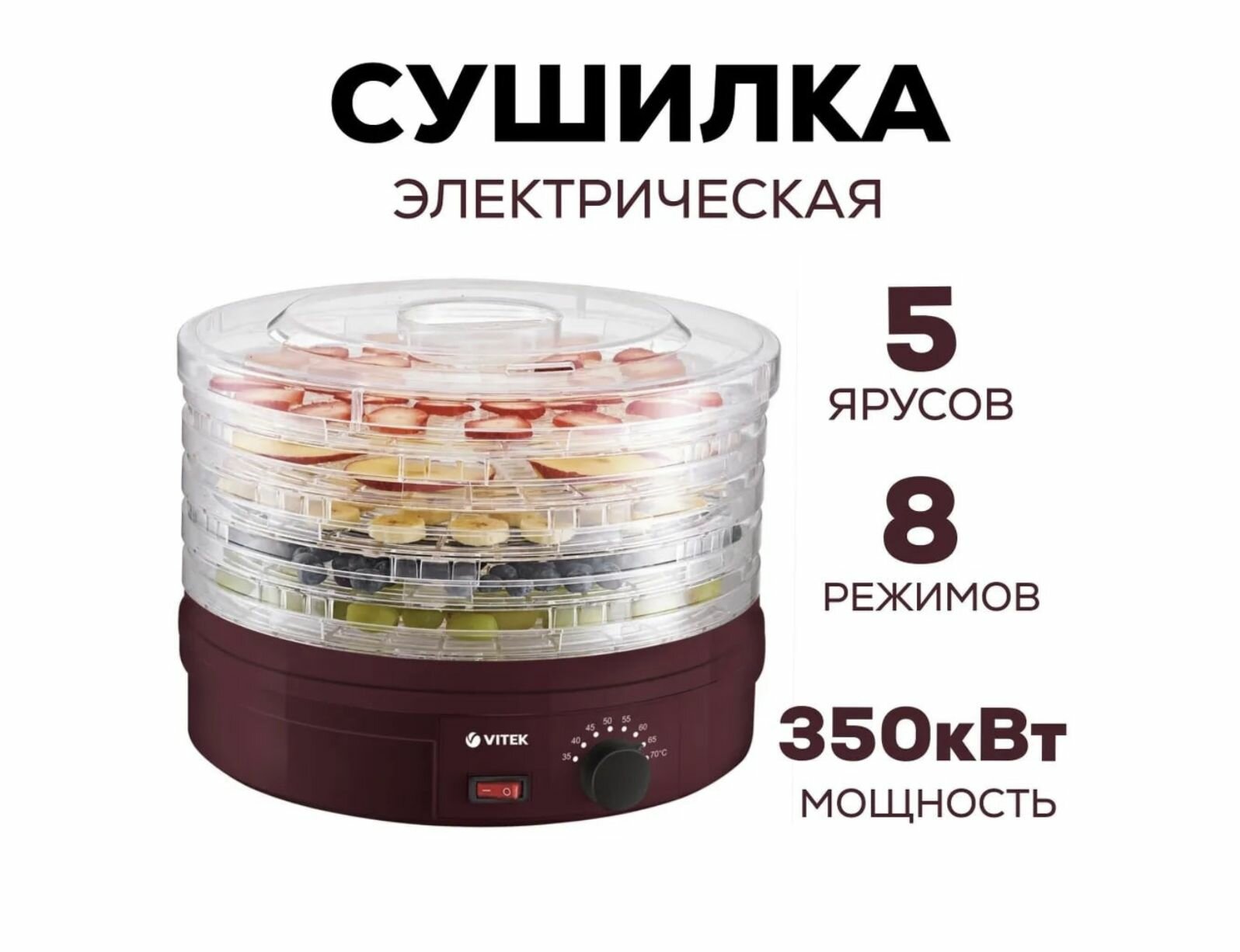 Купить Сушилка для овощей VITEK VT-5061, мощность 350Вт, 5 прозрачных пластиковых поддона.