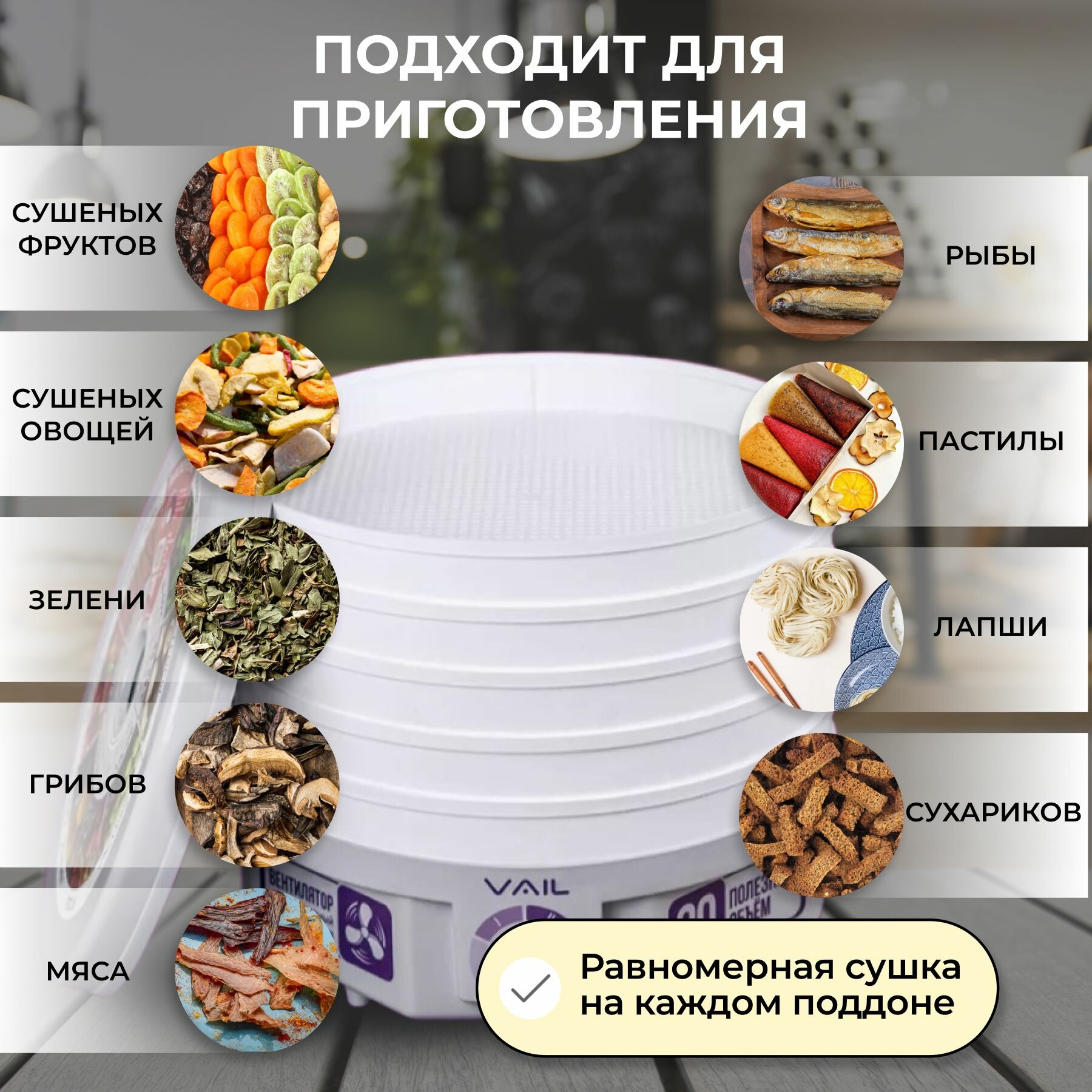 Сушка для овощей и фруктов электрическая VАIL VL-5105 дегидратор интересное:
