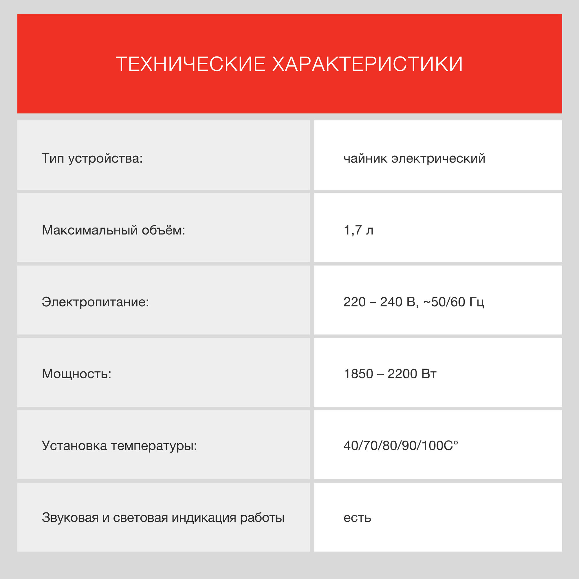 | Дополнительные функции | поддержание температуры |