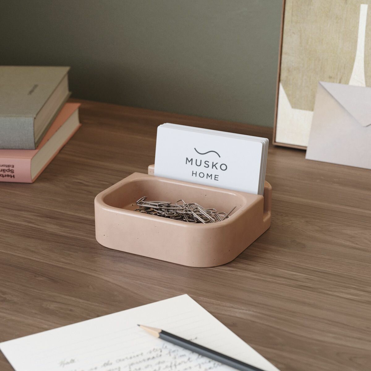 Подставка, держатель для визиток Oliver, визитница, бетон, розовая глянцевая интересное:
