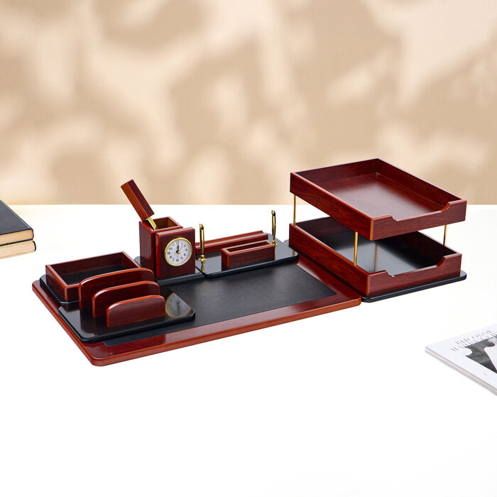 | В комплекте | лоток для бумаг, нож канцелярский, подставка, часы |