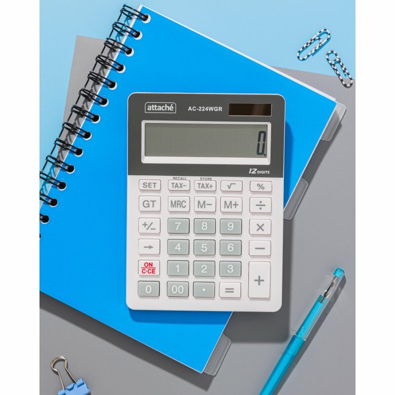 Калькулятор Attache Настольный, AС-224WGR, 12 разрядов, двойное питание, бело-серый