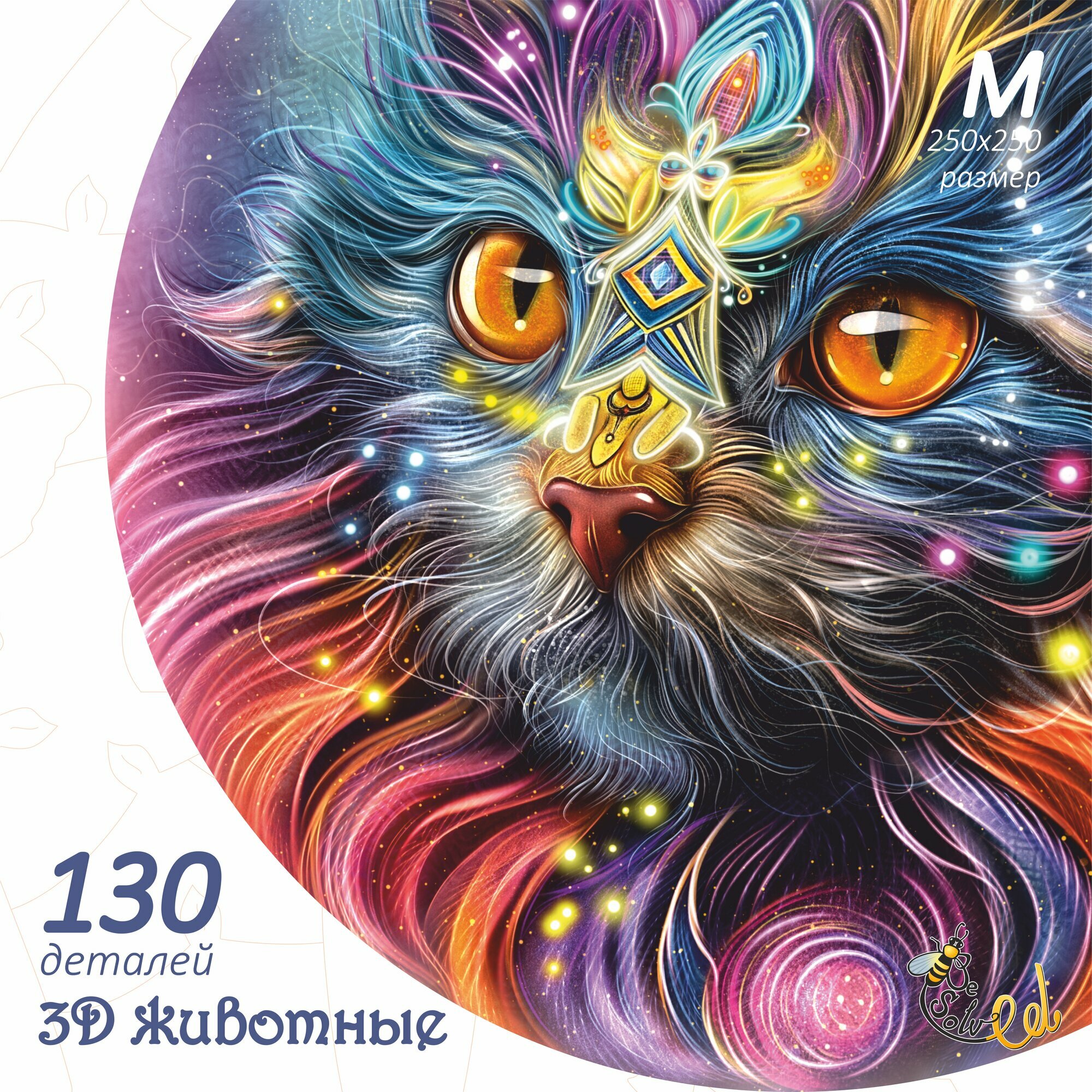 "Загадочный кот" - деревянный пазл для детей и взрослых, 130 элементов в форме животных